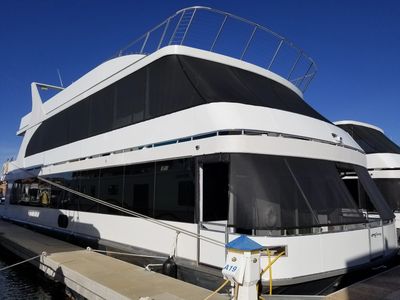 This is a 22 x 88 composite build with PWC bays, Bow Thrusters, Fire Pit. it's over the top for a boat in this class. larger rear deck and swim platform. Beautiful boat and I will let the video speak for itself. Click on link!